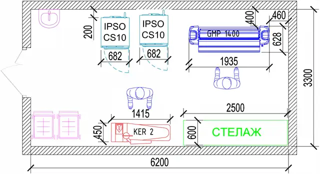 Незважаючи на продуктивність до 200 кг/зміну, ця комплектація обладнання займає таку ж площу, як і комплект на 100 кг/зміну.