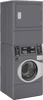 У нижній частині розташована пральна машина, а зверху – сушильний барабан. Таким чином дві машини займають площу однієї.