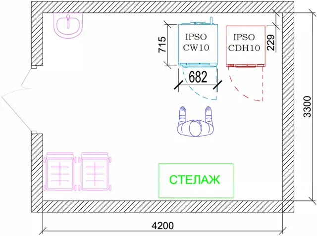При цьому повинні бути передбачені зони для збирання та сортування рушників, а також зона зберігання чистої білизни.