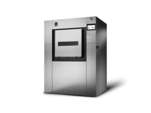 Машина має два люки на протилежних сторонах. Це спрощує потоки та знижує ризик перехресного забруднення. Віджим до 900 об/хв (G-фактор 350) зменшує залишкову вологість. Це знижує навантаження на сушіння.