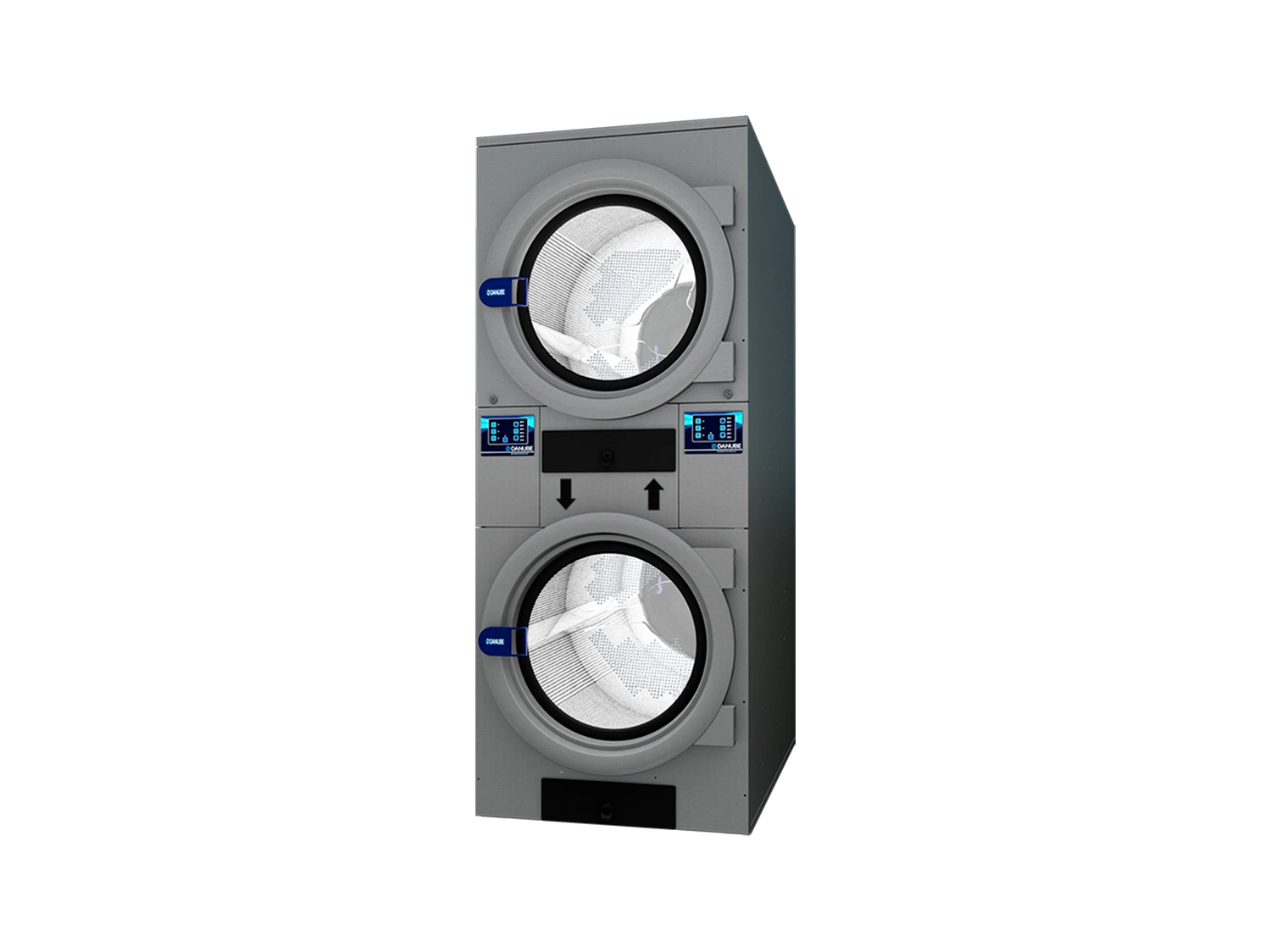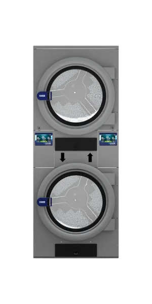 Модель STD-14 – це два незалежні сушильні барабани завантаженням по 15 кг в одному корпусі з двома панелями управління. Кожний барабан обладнан ТЕНами потужністю 18 кВт. Швидкий нагрів повітря та ефективне використання повітряного потоку забезпечують продуктивність двоповерхової машини до 60 кг/год.