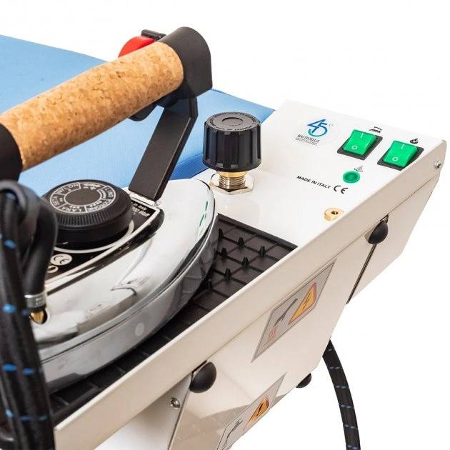 У комплект поставки входить професійна електропарова праска EOS та вбудований автономний парогенератор. Нагрів прасувальної поверхні покращує якість прасування, запобігає утворенню конденсату.