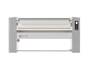 GMP e² 160.30 — промисловий прасувальний каток нового покоління з робочою шириною 1600 мм і валом Ø300 мм. Розрахований на обробку прямої білизни із залишковою вологістю до 25%.