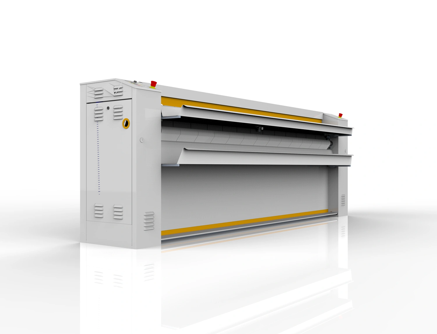 Прасувальний каландр G26.35 досушує та прасує білизну з залишковою вологістю до 50%. Після віджиму у високошвидкісній пральній машині немає необхідності використовувати сушильну машину у пральні. Ширина робочої поверхні – 2,58 метра.